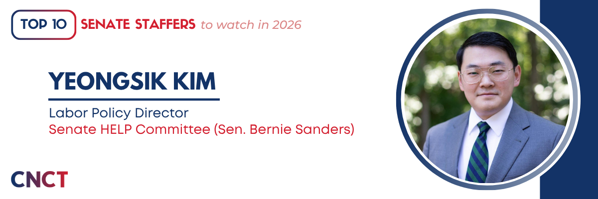 It may be a new year, but hot-button issues like AI regulation and antitrust enforcement aren’t going anywhere. The same goes for Yeongsik Kim, Labor Policy Director to Bernie Sanders on the Senate HELP Committee. Working for one of the most outspoken voices on these issues, Kim will be at the center of debates over AI’s impact on the workforce and data center development. With a background in law and experience at the National Labor Relations Board, he’ll be a key player to watch this year.